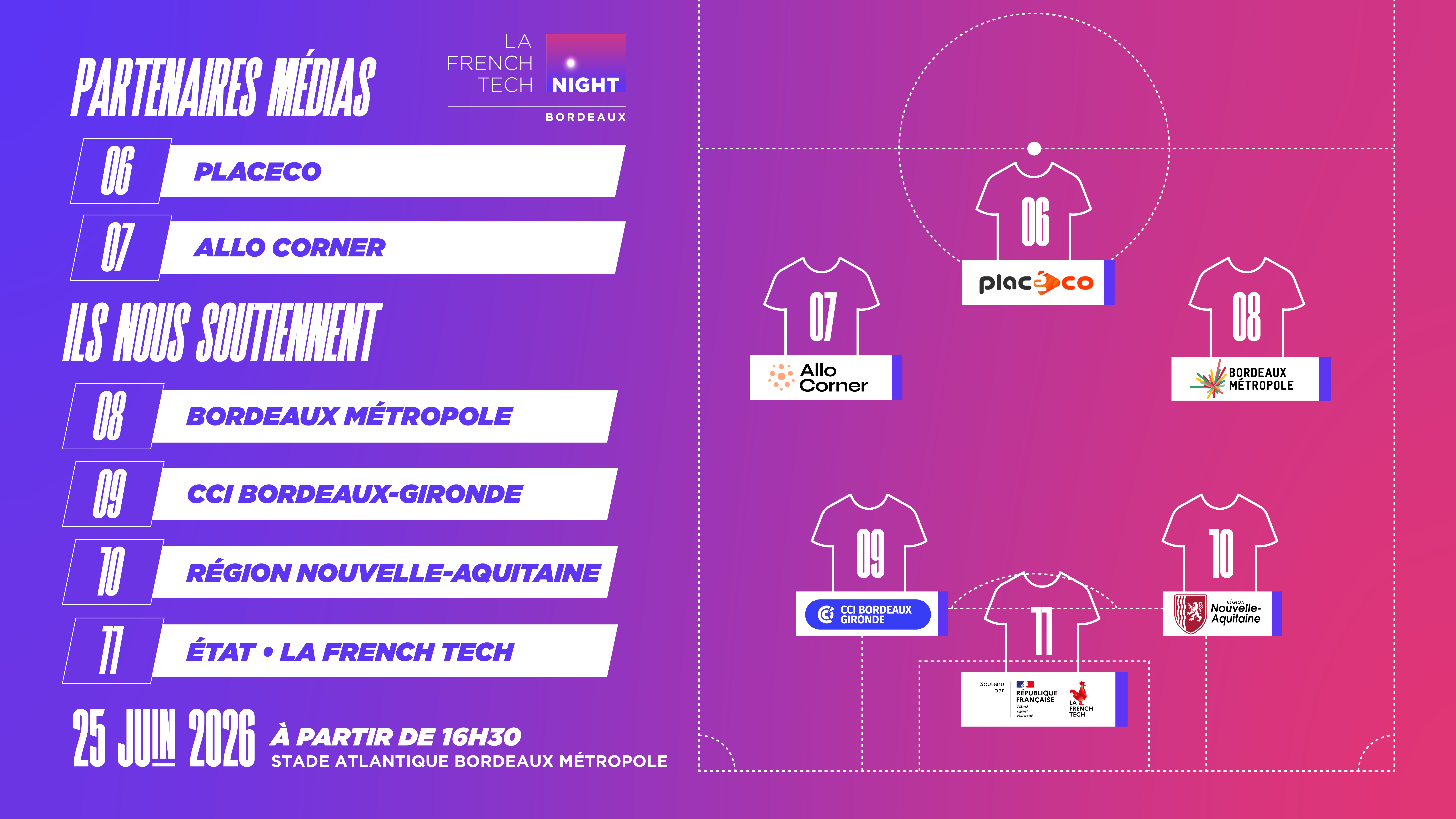 La prochaine édition de La French Tech Night aura lieu le 25 juin 2026 au Stade Atlantique Bordeaux Métropole, avec un format élargi et un lieu qui soutient l’ambition affirmée : 700 décideurs + 700 collaborateurs, et l’ambition d’apporter de la valeur à chacun des participants.